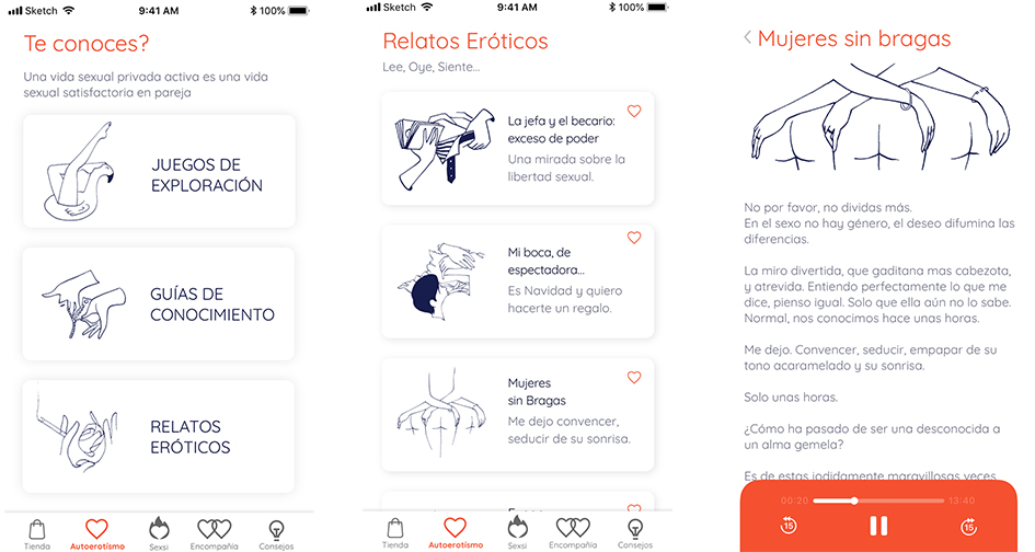 All the content is free, together in a clean manner, with white as the predominant color, to transmit transparency, guide and normalise the sexual act and conversation, with ourselves and with our partner.